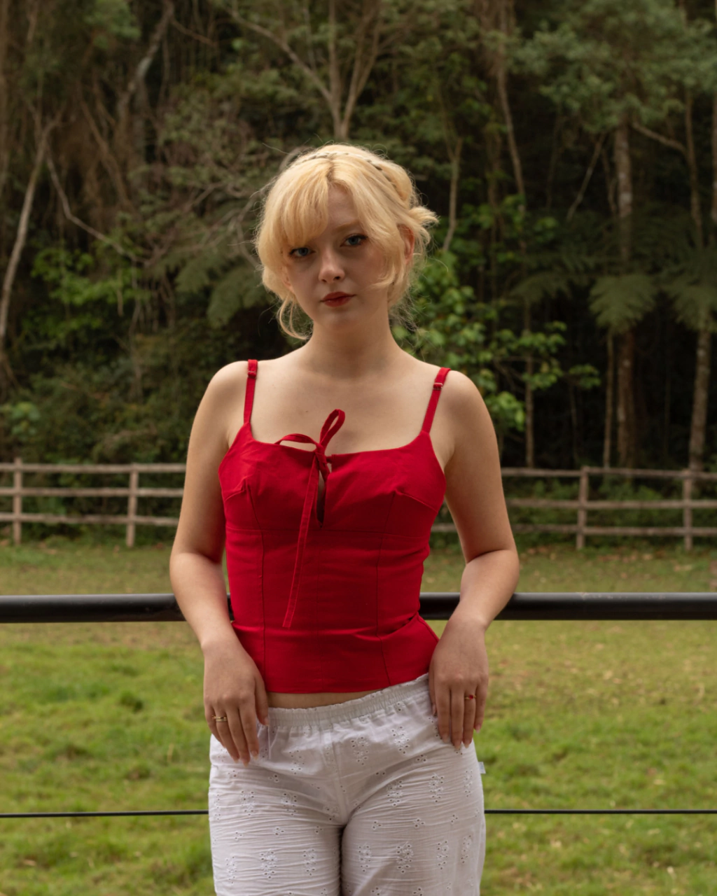 O Top Corset Envelope é a tradução perfeita entre romantismo e o visual mais sexy. Inspirado nas cartas que atravessam o tempo, ele celebra o gesto de se vestir com intenção — firme, bonito e cheio de história. Estruturado na medida certa, ele modela o corpo sem prender o movimento, te acompanhando com conforto e presença em cada instante. Feito em sarja 100% algodão, é o toque artesanal e responsável que transforma qualquer look em um bilhete de amor ao próprio corpo.